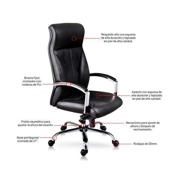 Garantía: 5 años en todos los componentes, de por vida en ruedas, base y pistón. No aplican tela (piel) y/o espuma