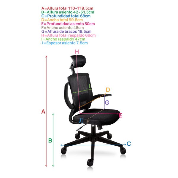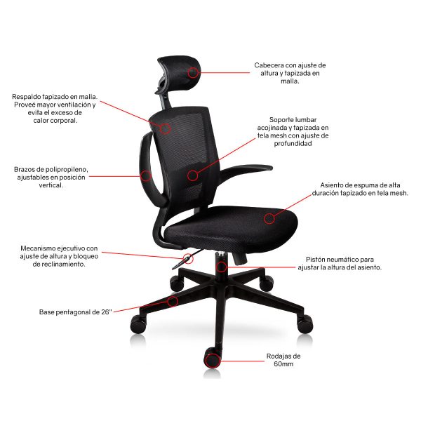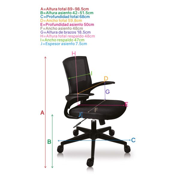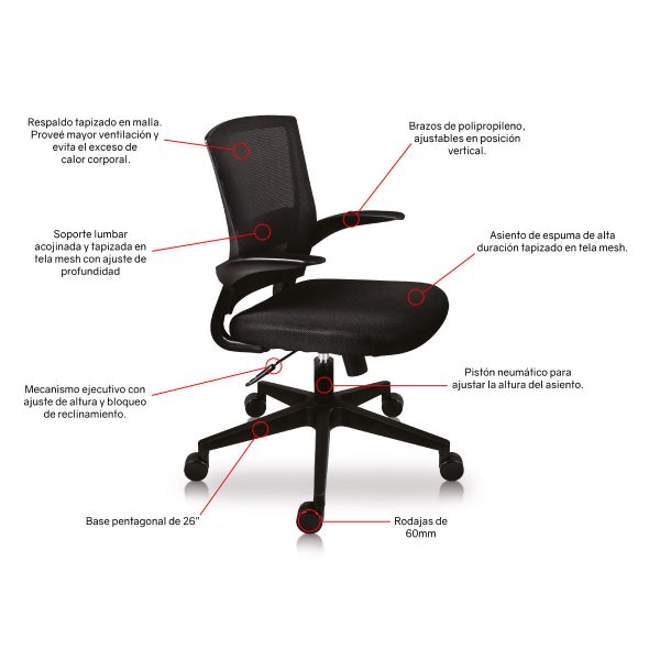 Garantía: De por vida en ruedas, base y pistón.Cinco años en todos los demás componentes, no aplican tela y/o espuma