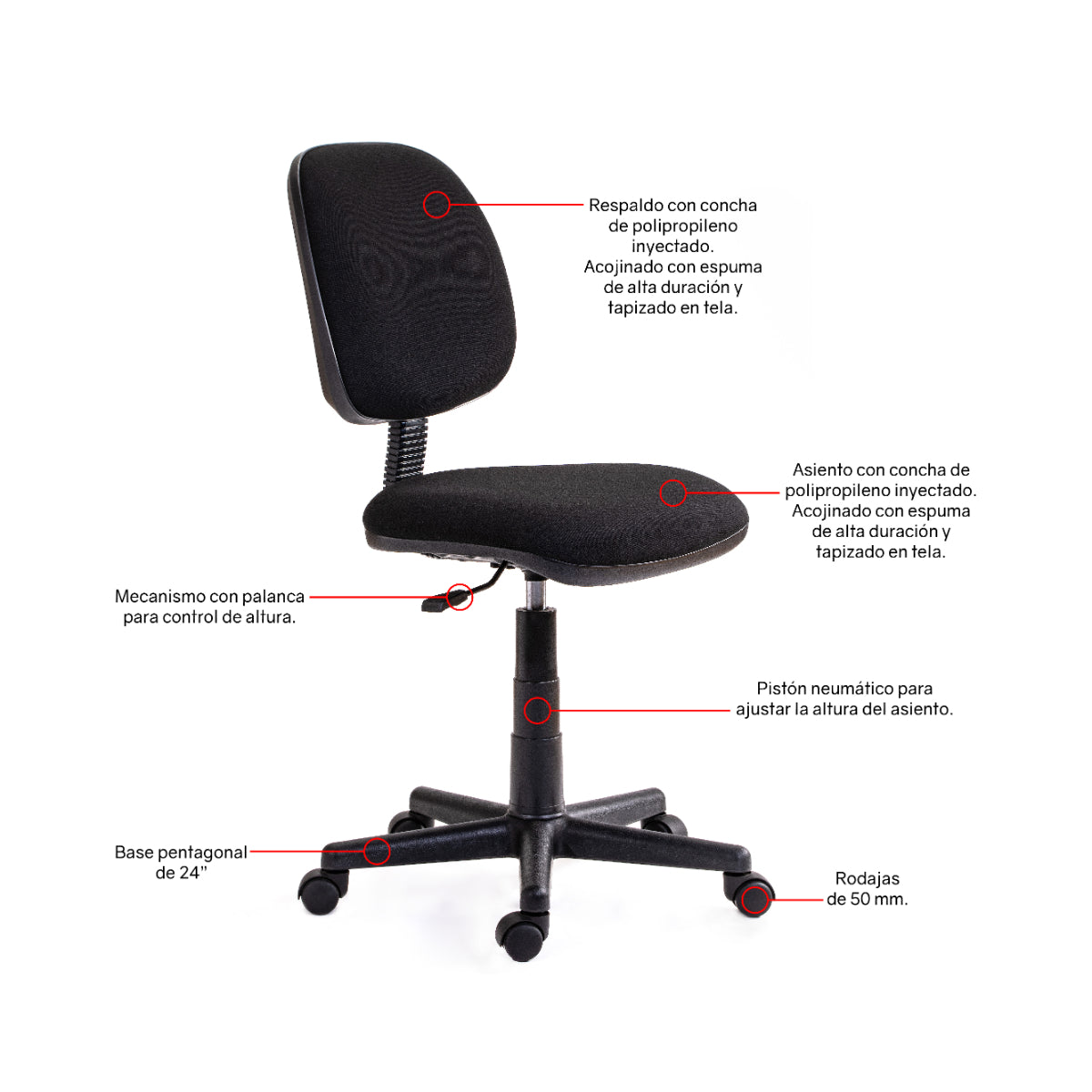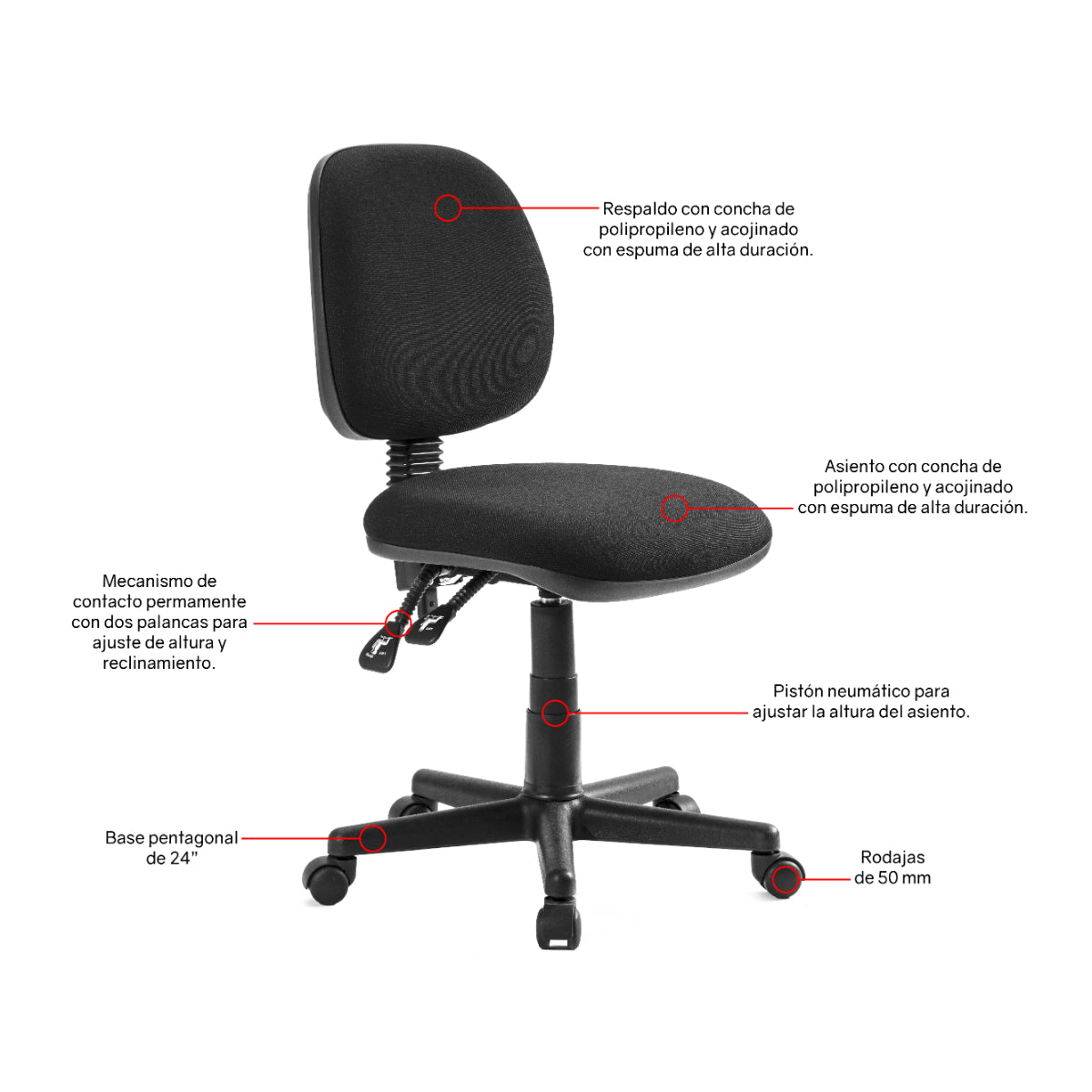- Respaldo medio ajustable para brindar soporte personalizado.